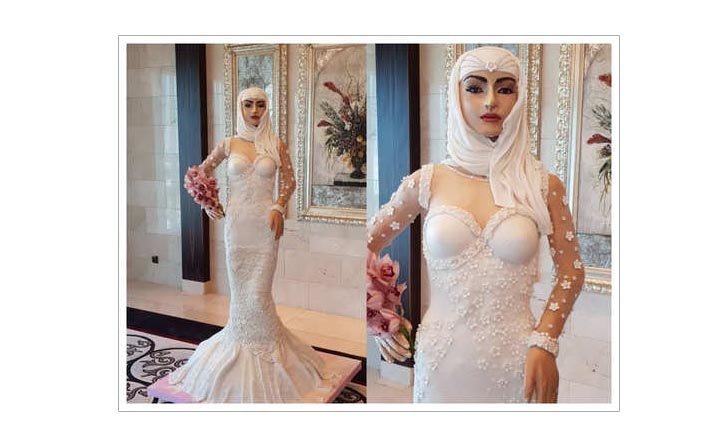 معلوماتِ عامہ کی انگریزی ویب سائٹ "pinterest.com” کے مطابق تصویر میں نظر آنے والی خاتون کوئی ’’پُتلی‘‘ نہیں بلکہ دنیا کا مہنگا ترین شادی کیک (Wedding Cake) ہے۔